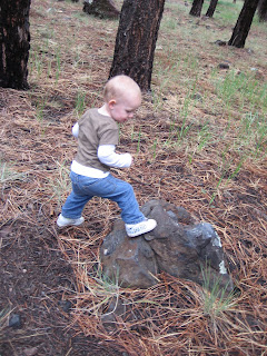 On Saturday we did a 11 mile hike that took almost 6 hours. We had alot of good and bad times on that hike. I'll name a few - got rained on, Jacob was screaming for about 25% of the time, I was scared of bears, thunder and lighting ( that was like .5 miles away), got lost for about 5 minuets, 2 miles of the hike went up to 7,000 feet, very green, fresh air, top off the mountain had an awesome view, Jacob slept 15% of the time, got lots of exercise, and felt like we accomplished something we didn't think we could do. Also on this night Jacob throw his binky in the fire, it was petty funny until we realized it was one we just bought!